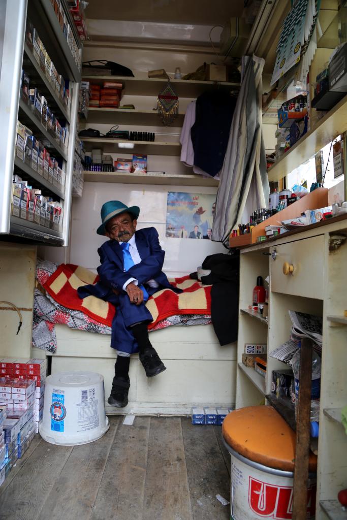 Bir dönem Yeşilçam'ın tanınmış sanatçılarıyla kamera karşısına geçen 90 santimetre boyundaki "Bitirim Zeki" lakaplı Zeki Keskin, Sivas'ta 51 yıldır ev olarak da kullandığı iki metrekarelik büfede zor koşullarda yaşam mücadelesi veriyor.