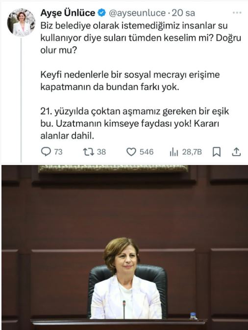 Ünlüce’nin “Biz belediye olarak istemediğimiz insanlar su kullanıyor diye suları tümden keselim mi? Doğru olur mu? Keyfi nedenlerle bir sosyal mecrayı erişime kapatmanın da bundan farkı yok. 21’inci yüzyılda çoktan aşmamız gereken bir eşik bu. Uzatmanın kimseye faydası yok. Kararı alanlar dahil” ifadelerine çok sayıda eleştiri geldi.