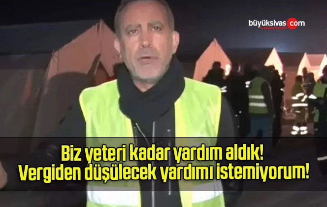 - Vergiden düşerek yapılacak yardımı ben istemiyorum. Ben gönlünden versin istiyorum, vergiden düşsün diye değil. O yüzden başvuruda bulunmadım, bulunmayı da düşünmüyoruz. Hatta biz yeteri kadar yardım aldık, kalan yardımı da, yardım etmek isteyenler AFAD’a yollasın. Devletin kurumudur, birlikte çalışıyoruz.-internethaber