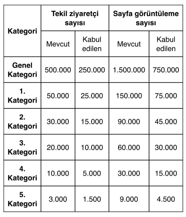 İnternet haber sitelerini daha nitelikli yayıncılık yapmaya teşvik etmesi beklenen düzenlemeye göre, günlük asgari tekil ziyaretçi ve sayfa görüntüleme sayıları yüzde 50 oranında düşürüldü.