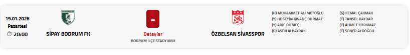 • Bodrumspor–Sivasspor maçının hakemi belli oldu!