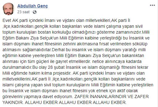 Abdullah Genç'in paylaşımının tamamı şöyle: