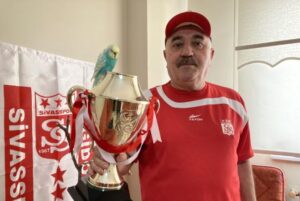 Bayrak’ın evlatlarından ayırmadığı ve gözü gibi baktığı kuşu Japon’a tuttuğu takımın sloganlarını 3 gün içersin de öğreterek, final maçı oynayacak Sivasspor’un kupayı almasını istiyor.