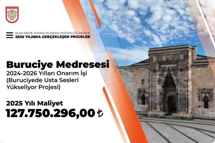 2025 yılı proje maliyetinin 127 milyon 750 bin 296 lira olarak açıklandığı restorasyon çalışmasının tamamlanmasıyla birlikte Buruciye Medresesi’nin kültürel ve turistik değerinin daha da artması bekleniyor. Yetkililer, projenin tamamlanmasının ardından medresenin hem yerli hem de yabancı ziyaretçiler için daha nitelikli bir kültür ve turizm merkezi haline geleceğini belirtti.