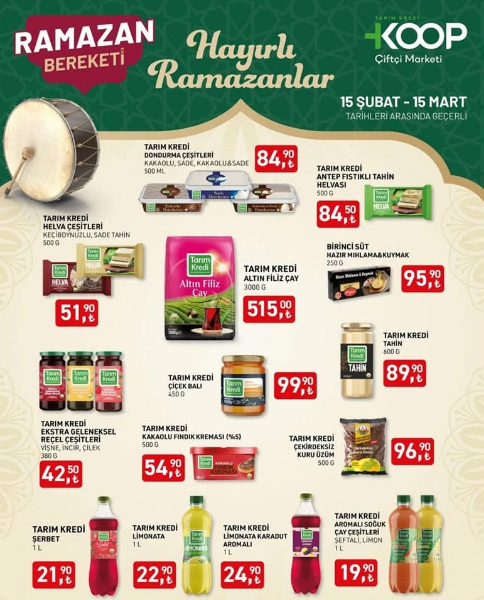 Tarım Kredi Kooperatifi Market, Ramazan ayına özel büyük indirimler sunan aktüel kataloğunu yayınladı. 15 Şubat - 15 Mart 2025 tarihleri arasında geçerli olacak indirimlerde temel gıda ürünlerinden tatlı çeşitlerine kadar birçok farklı ürün yer alıyor.
