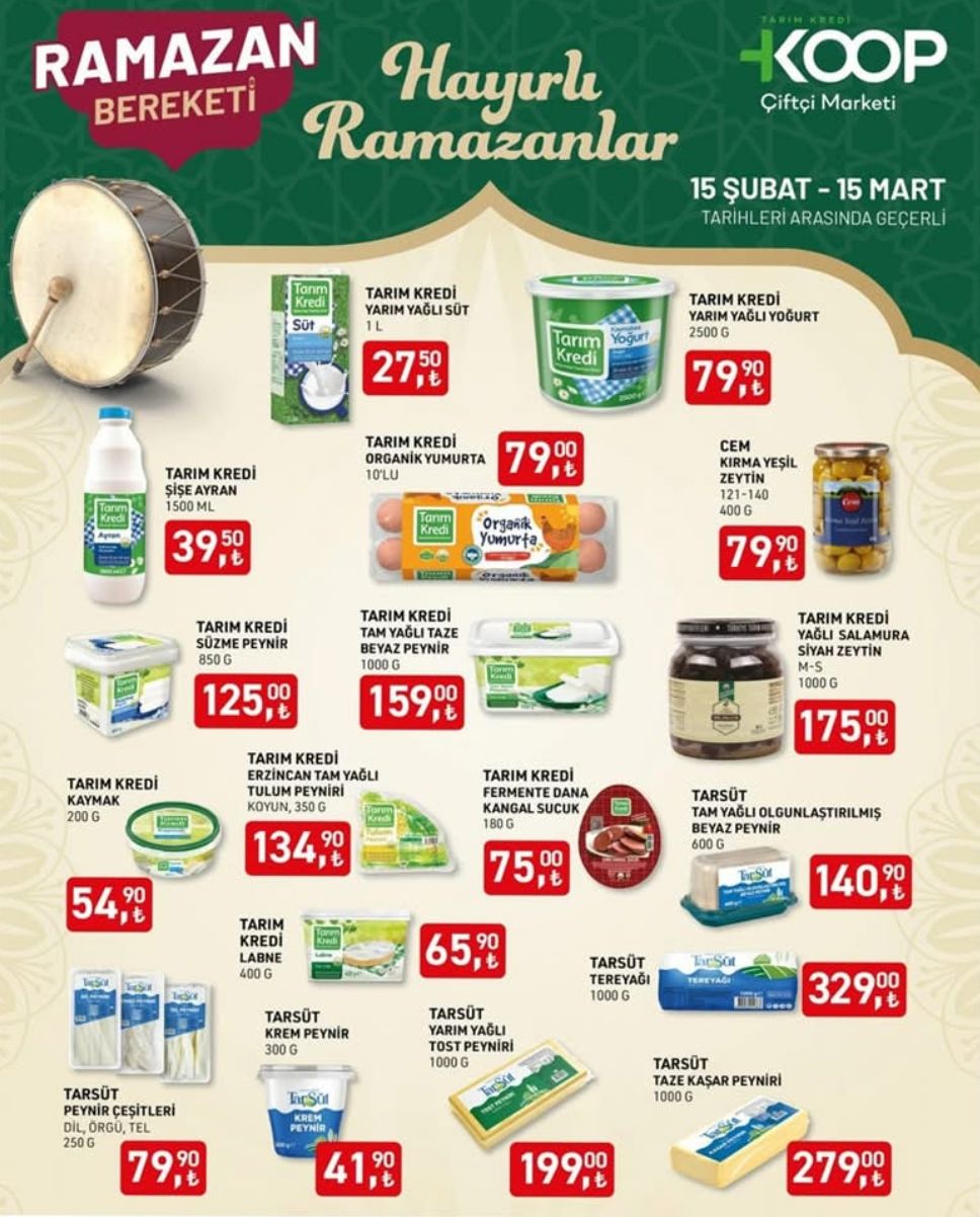 "Ramazan Bereketi" temasıyla hazırlanan katalogda, hurma, güllaç, un, bakliyat, süt ve süt ürünleri gibi birçok üründe cazip fiyatlar sunuluyor.