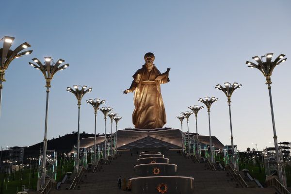 Aşkabat'ta 60 metre yüksekliğindeki Türkmen şair Mahtumkulu Firaki anıtı törenle açıldı.