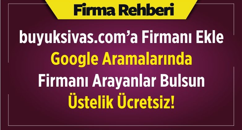 Büyük Sivas Firma Rehberi Kayıtlar Kısa Süre için Ücretsiz! Acele Edin!