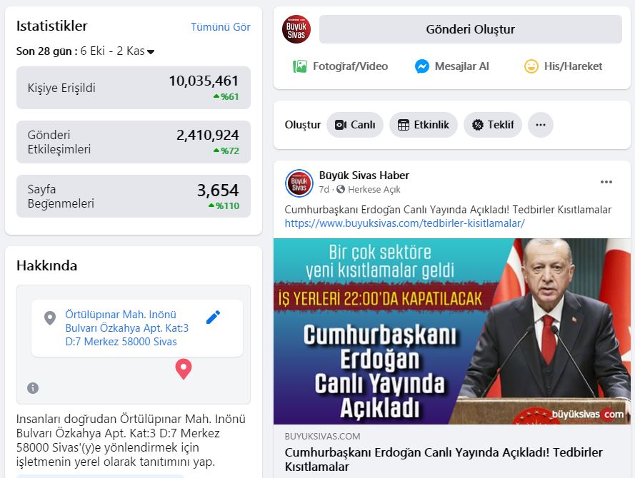 Bunlardan "Büyük Sivas Haber" sayfasında son 28 günde 10 Milyonun üzerinde kişiye erişerek yeni bir rekor kırmanın mutluluğunu yaşamaktayız...