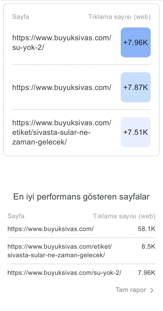 Kasım ayı içerisinde Sivaslıların en fazla tıkladığı sayfa "Belediye duyurdu! Sivaslılara sabaha kadar su yok" oldu. Benzer şekilde sıralama da yine Büyük Sivas'ın yayınladığı su kesintisi haberleri yer aldı.