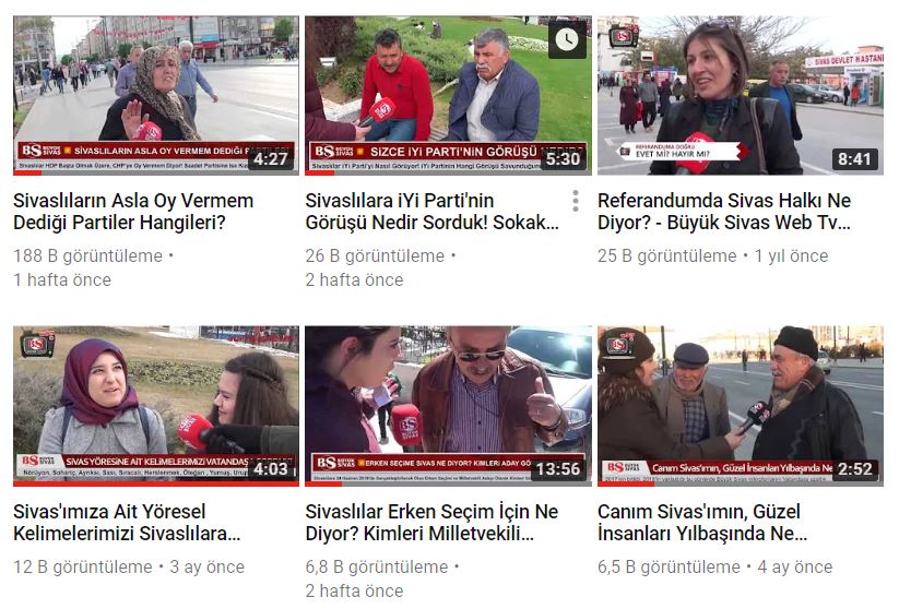 Benzer şekillerde, "Sivaslıların Asla Oy Vermem Dediği Partiler Hangileri?", "Referandumda Sivas Halkı Ne Diyor?", "Sivaslılar Erken Seçim İçin Ne Diyor? Kimleri Milletvekili Görmek İstiyor?" gibi gerçekleştirdiğimiz Sokak Röportajları da binlerce kez izlenmiş durumda...