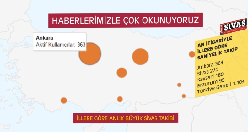 Anlık başkent Ankara'dan 363, Sivas'tan 270, Kayseri'den 180, Erzurum'dan 95 ve Türkiye genelinden Sivaslılar sayfamızdaki haberleri okuyup bizzat takip ediyor
