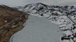 Sivas’ta sert geçen kış mevsiminde donan Pusat Özen Baraj Gölü, Nisan ayı gelmesine rağmen halen çözülmedi.