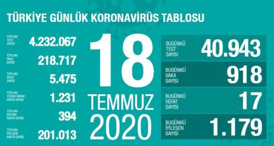 Bakan Koca attığı tweet ile "1.000’in üstünde gerçekleştiği en son güne kıyasla, yeni vaka sayımız, bugün 90 azaldı. SON 3 GÜNDE en çok vaka görülen beş ilimiz: İstanbul, Ankara, Gaziantep, Konya, Diyarbakır. En az vaka görülen beş ilimiz: Artvin, Tunceli, Bayburt, Kırklareli, Bartın." derken sayılar şöyle