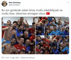 Sosyal medya hesabından galibiyet fotoğrafını paylaşan Çalımbay paylaşıma, “Bu zor günlerde sizleri biraz mutlu edebildiysek ne mutlu bize, ülkemize armağan olsun” notunu ekledi.