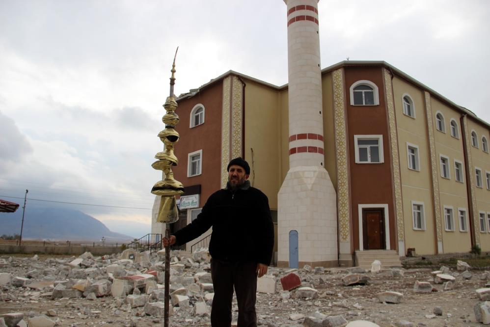 Sivas'ta caminin minaresi kuvvetli rüzgara dayanamadı