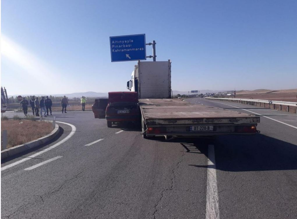 Edinilen bilgilere göre kaza Sivas- Şarkışla karayolu Altınyayla Pınarbaşı kavşağın da meydana geldi. Gürcistan’dan Adana’ya gitmek için yola çıkan yabancı uyruklu Z.G. (37) idaresindeki ML 707 SA plakalı TIR ile aynı istikamete giden S.G. (41). idaresindeki 58 ACV 908 plakalı Tofaş marka otomobil kavşakta çarpıştı. Çarpışmanın etkisiyle otomobilde bulunan sürücünün annesi S.G. (75) eşi S.G. (38) ve oğlu K.G. (3) yaralandı. Durumun bildirilmesi üzerine olay yerine sağlık, itfaiye ve sağlık ekipleri sevk edildi. Polis çevrede güvenlik önlemi alırken LPG’li otomobilde meydana gelen gaz kaçağı ise itfaiye ekiplerinin çalışmasıyla durduruldu. Yaralıları olay yerinde yapılan ilk müdahalenin ardından ambulanslarla Şarkışla Devlet hastanesine kaldırıldı. Yaralıların sağlık durumlarının iyi olduğu öğrenildi. Kaza ile ilgili inceleme başlatıldı.-iha