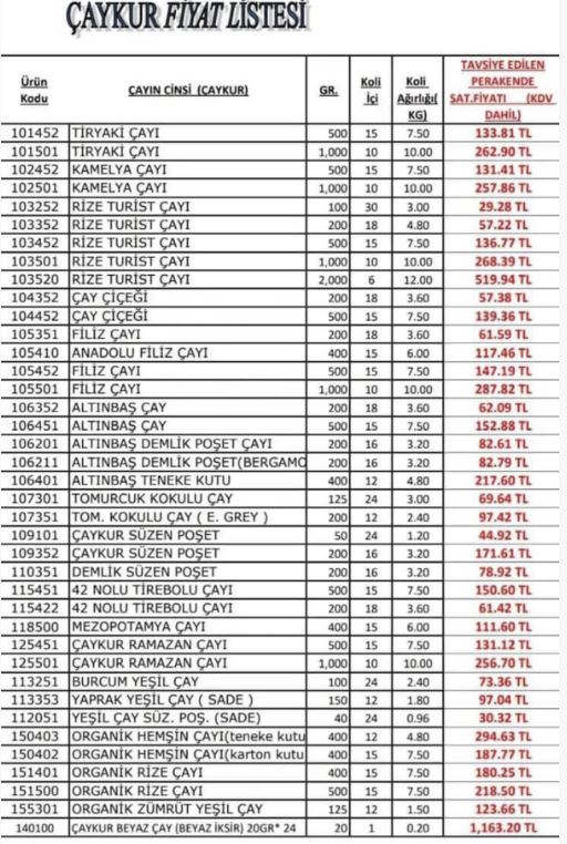 Tekel Bayileri Yardımlaşma Derneği (TBYD) Başkanı, çaya gelen zam kararının ardından oluşan yeni fiyat listesini paylaştı.