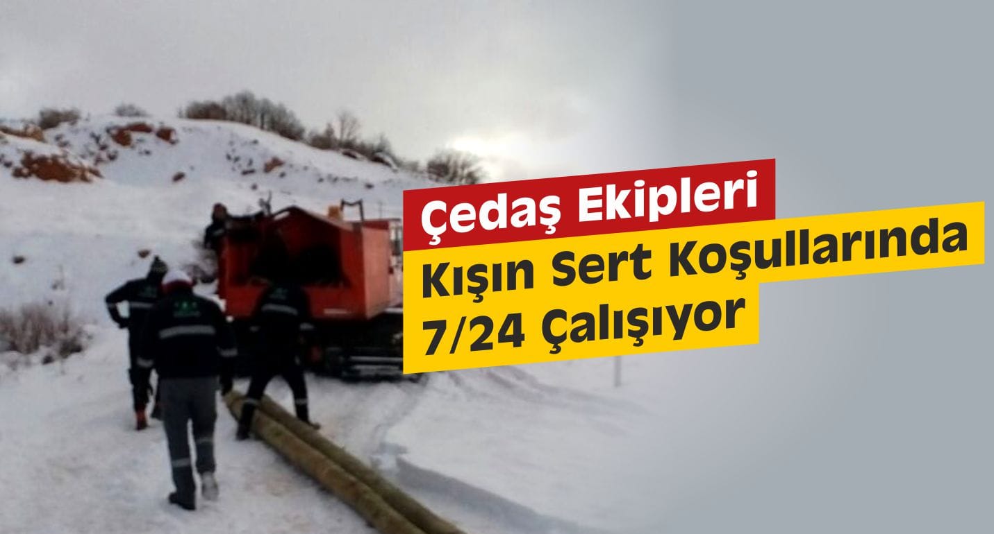 Kış dönemi Acil Eylem Planını devreye alan ÇEDAŞ, elektrik kullanımının ısınma amaçlı artması ve buz yükü dolayısıyla enerji nakil hatlarında meydana gelen arızalara karşı teyakkuz halinde, sert kış şartlarının yaşandığı bölgede gerekli ekipman ve personel hazırlıkları çok öncesinden tamamlandı. Kar, tipi ve fırtına nedeniyle elektrik dağıtım hatları ve şebekelerinde oluşan arızalara 7/24 müdahale eden ÇEDAŞ, vatandaşların mağduriyet yaşamaması için yoğun çaba gösteriyor.