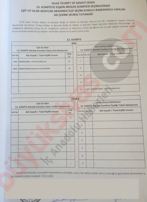 Sivas Ticaret ve Sanayi Odası seçimlerinin en çok tartışılan komitesi olan Kuyumcular ve Optikçilerle ilgili yayınladığımız haber sonrasında bir takım kişiler haber merkezimize ulaşarak yayınladığımız haberin doğru olmadığını ve hiç kura çekilmediğini ifade etti.