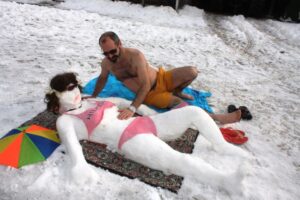 Gürsu’da 7 yıl önce kardan bir gelin, 2 yıl sona da bikinili kardan kadın görüntüleriyle sosyal medyada izlenme rekorları kıran bir çocuk babası Ertan Kalktık, bu sene de kardan kadının yaşlılığını canlandırdı. Yağan lapa lapa kara aldırış etmeden 3 saatlik çalışmayla kardan kadın yapan Kalktık, üşümesin diye ona babaannesinin kıyafetlerini giydirip yaşlılıkta en iyi hediye olarak düşündüğü takma diş hediye etti.