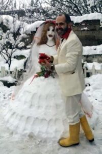 Bursa’da 7 yıl önce kardan yaptığı gelinle evlenip, sosyal medyada tıklanma rekorları kıran adam, bu kez de yaşlanan kardan karısına takma diş hediye etti.