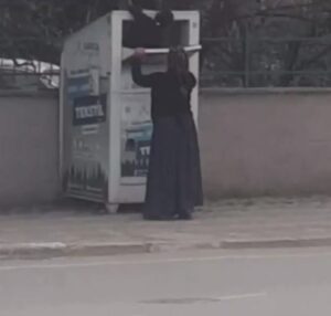 Kocaeli’nin Darıca ilçesinde bir kadın, yanında getirdiği çocuğu kıyafet kumbarasına sokarak, kumbaranın içindeki kıyafetleri aldırdı. O anlar ise bir vatandaşın cep telefonu kamerası tarafından kaydedildi.