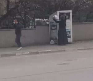Arkadaşlarıyla birlikte börekçide otururken olaya şahit olduğunu anlatan Burak Keleş, “Köşede bir tane kıyafet kumbarası var. Arkadaşlarımla o tarafa doğru bakarken orada bir olay fark ettik.