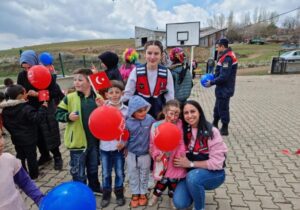 23 Nisan Ulusal Egemenlik ve Çocuk Bayramı'nı kutlayan ekipler, öğrencilere boyama kitabı, çocuk dergisi, balon ve bayrak dağıttı.
