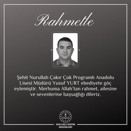 Sivas'ta geçirdiği kalp krizi sonrası genç yaşta Altınyayla Şehit Nurullah Çakır Çok Programlı Anadolu Lisesi Müdürü Yurt hayatını kaybetti.