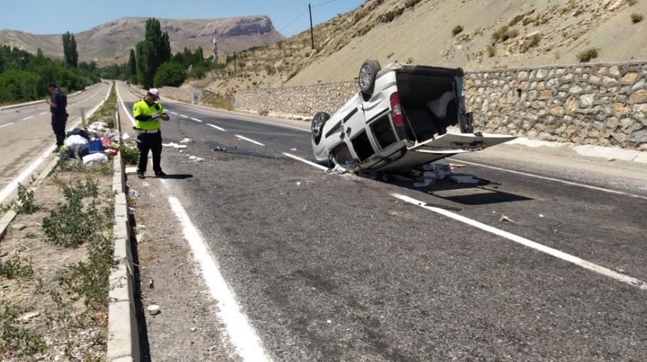 Sivas’ın Gürün ilçesi Bahçeiçi köyü yakınlarında Kayseri- Malatya karayolunda seyreden 34 NJ 9951 plakalı Fiat Doblo marka hafif ticari araç, sürücüsünün direksiyon hâkimiyetini kaybetmesi sonucu kaşı şeride geçerek takla attı.