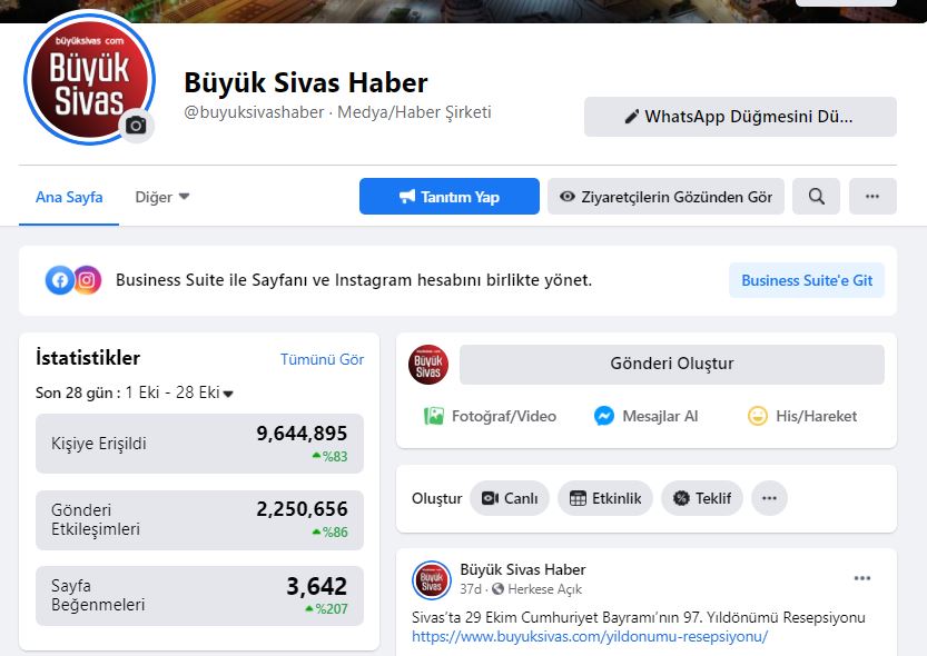 Sosyal medya hesaplarımızda aylık 10 milyonun üzerinde etkileşim alan portalımız bu alanda da Sivas'ın tartışmasız lideri...