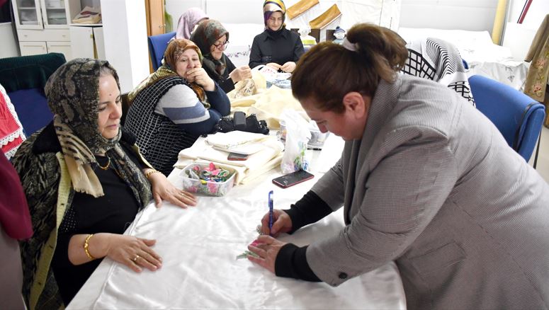 "Maddi durumu iyi olmayan, elindeki eski çeyizleri değerlendirip onu modern hale getirdikten sonra satıp aile ekonomisine kazandırmak isteyen kadınlarımız sipariş üzerine çalışıyor. Amigurimi, rölyef, gelin ve damat bohçaları, aklınıza ne geliyorsa el işlerinin tamamını satabiliyoruz. Bazı kadınlarımız da dışarıdan yeni ürün almaktansa daha ucuza mal olacağı için elindeki ürünü kendisi için değerlendiriyor. Bu şekilde çocuğuna, kendisine de yapsa aile ekonomisine katkı sağlıyor."