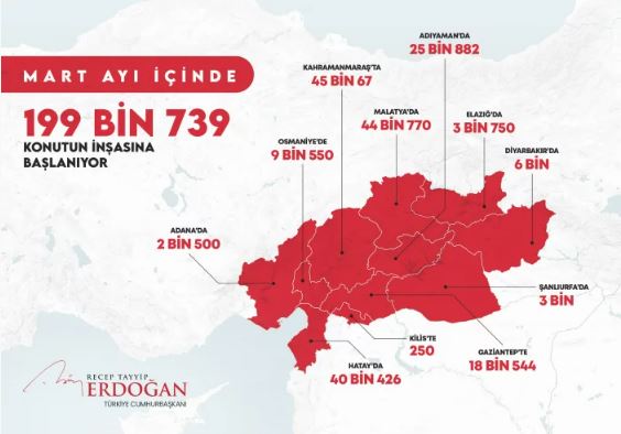 Cumhurbaşkanı Recep Tayyip Erdoğan, depremzedeler için yapılacak konut sayısını açıkladı. Buna göre en fazla konut Hatay'da yapılacak...