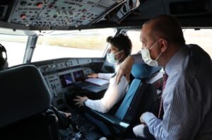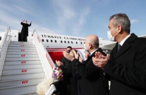 Cumhurbaşkanı Erdoğan'ı taşıyan uçak, yeni havalimanında su takı töreniyle karşılandı. Erdoğan, havalimanında incelemelerde bulundu.