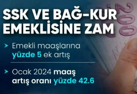 -SSK ve Bağ-Kur emeklilerimizin Ocak 2024'ten itibaren 6 aylık artış oranı yüzde 42,6'ya yükseliyor.
