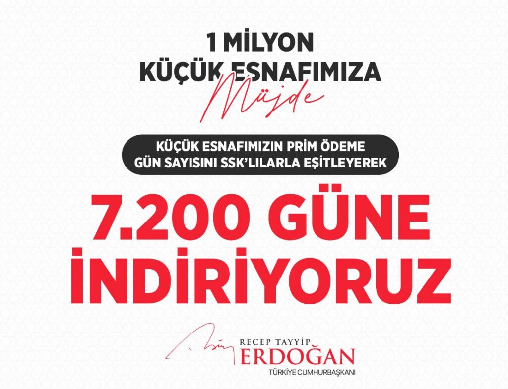 Erdoğan miting konuşmasında bir müjde vererek küçük esnafın prim gün sayısının düşeceğini açıkladı.