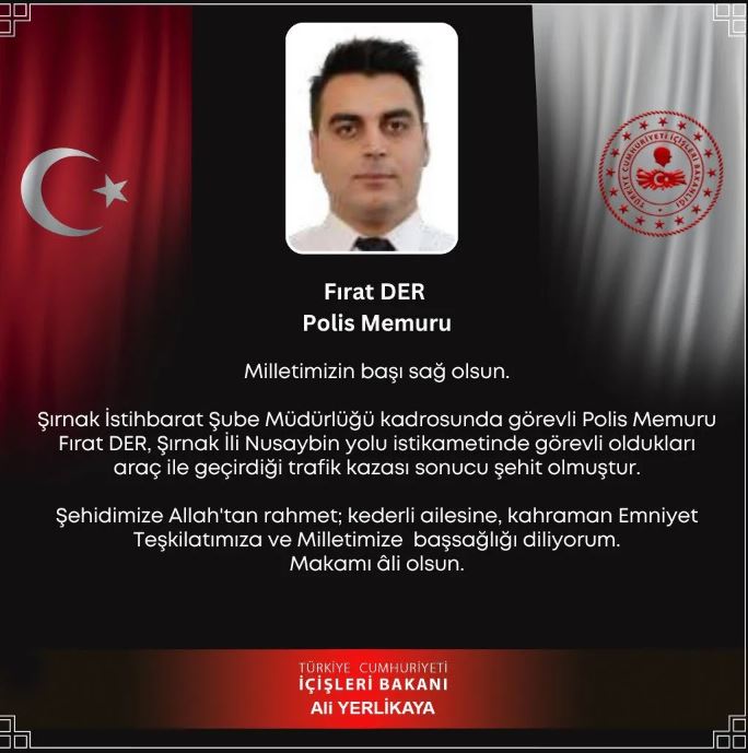 Cumhurbaşkanı Erdoğan’ın koruma ekibi, Şırnak İdil'de trafik kazası geçirdi. Kazada 1 polis memuru şehit oldu, 2'si polis memuru 3 kişi yaralandı.