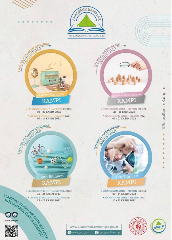 Sivas Cumhuriyet Üniversitesi sosyal medya hesabından yaptığı açıklamada "Akademik Kamplara lisans programından mezun veya halihazırda devam eden son sınıf öğrencisi ve aynı zamanda yüksek lisans yapmak amacı taşıyan gençlerimiz http://akademikkamplar.gsb.gov.tr internet sitesi üzerinden 05-17 Ekim 2022 tarihleri arasında müracaat edebilecektir." ifadelerine yer verildi.