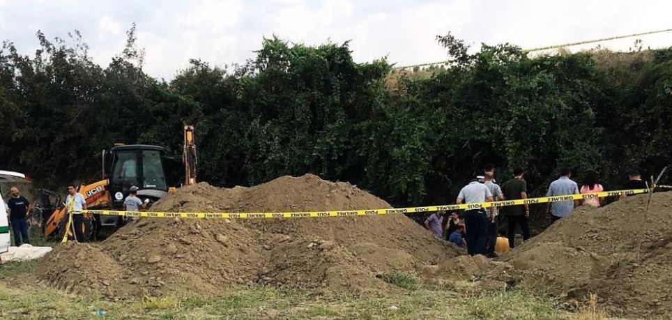 Tarlada açılan 2 metre derinliğinde ve yaklaşık 30 metre uzunluğundaki çukurda çürümüş bir ceset bulundu. Bir erkeğe ait olduğu belirlenen ceset parçaları, çukurdan titiz bir çalışma ile çıkarıldı.