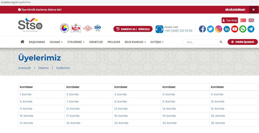 Ekibimiz yaptığı incelemede https://sivastso.org.tr/uyelerimiz linkinde komite ve üye listelerinin yer aldığını doğruladı.