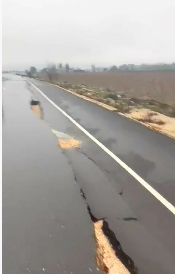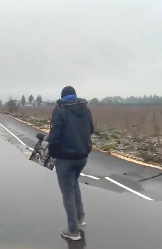 7.4 şiddetindeki depremin ardından yolun yarıldığı ve seyir halindeki araçların, göçüğün içine devrildiği görüldü.