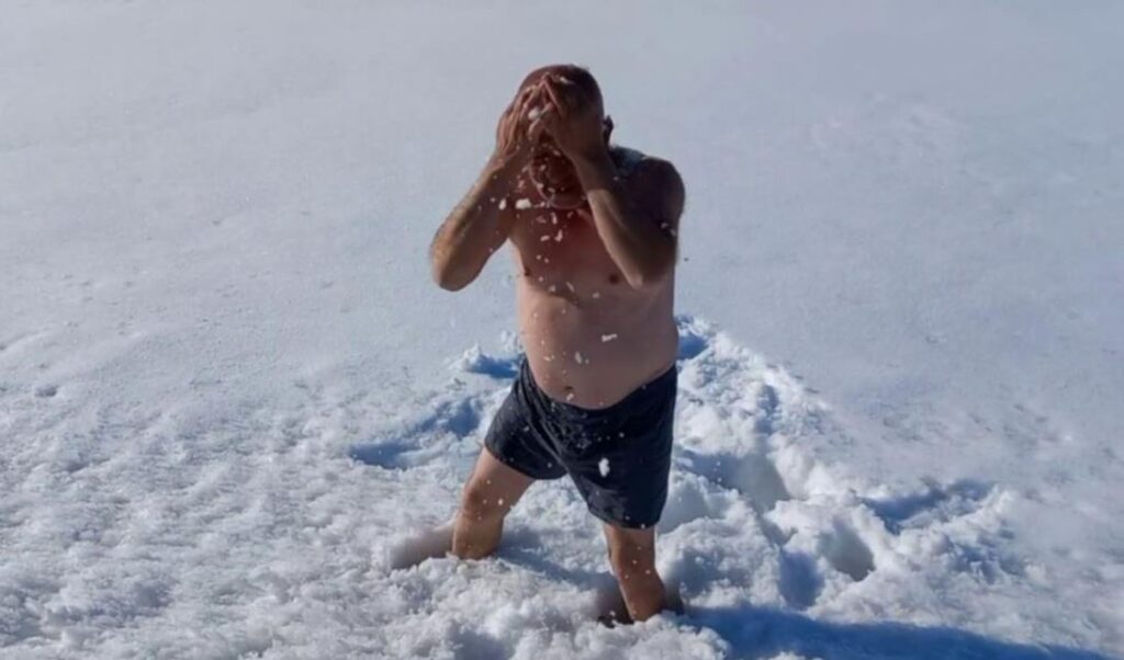 Sivas’ın Şarkışla ilçesinde yaşayan ve soğuk havaya karşı direncini soyunarak kara girdiği videolarla gösteren Kadim Alıcı (58), bu kez depremzedelere moral vermek için kar banyosu yaptı. Sıfırın altında 10 derecede birçok kişi sokağa çıkmaya bile cesaret edemezken o soyunup karlı zeminde yuvarlandı. Kahramanmaraş’ta meydana gelen ve 10 ilde yıkıma neden olan iki büyük depremin ardından zor günler geçiren afetzedelere moral vermeyi hedeflediğini ifade eden Alıcı; bu mevsimde kara girmenin şifa olduğunu söyledi.