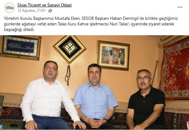 Sivas Tesviyeciler ve Oto Sanatkârları Esnaf odası başkanı Hakan Demirgil geçtiğimiz aylarda yapılan Sivas Esnaf ve Sanatkârlar Kredi ve Kefalet Kooperatifi seçimlerini Mesut Dursun’a karşı kaybetmişti…
