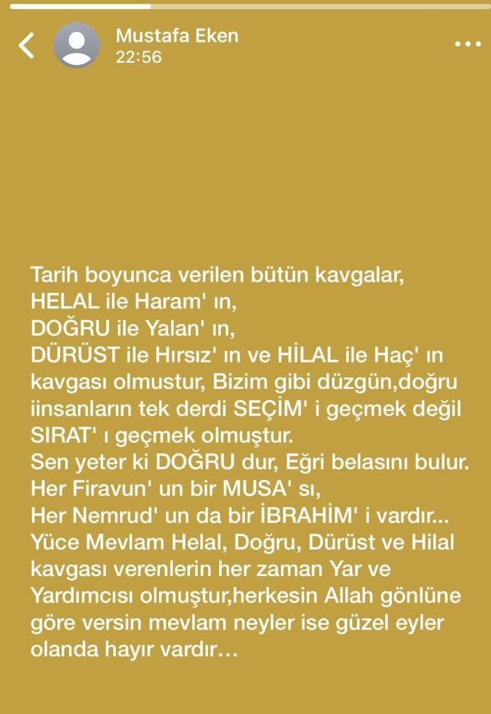 Seçim süreci boyunca centilmence davranışlar sergileyen ve süreci müthiş şekilde idare eden Eken az önce yaptığı paylaşımla ise ne demek istedi anlaşılamadı.