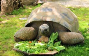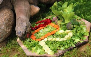 Yaklaşık 250 yıl yaşayabilen devasa Aldabra Kaplumbağası Tuki, 102. yaşına ayak bastı. Cumhuriyetin ilanından 3 yıl önce doğan Tuki için bakıcıları, en sevdiği yeşillikleri harmanlayarak ona güzel bir doğum günü pastası hazırlayıp sürpriz yaptı.