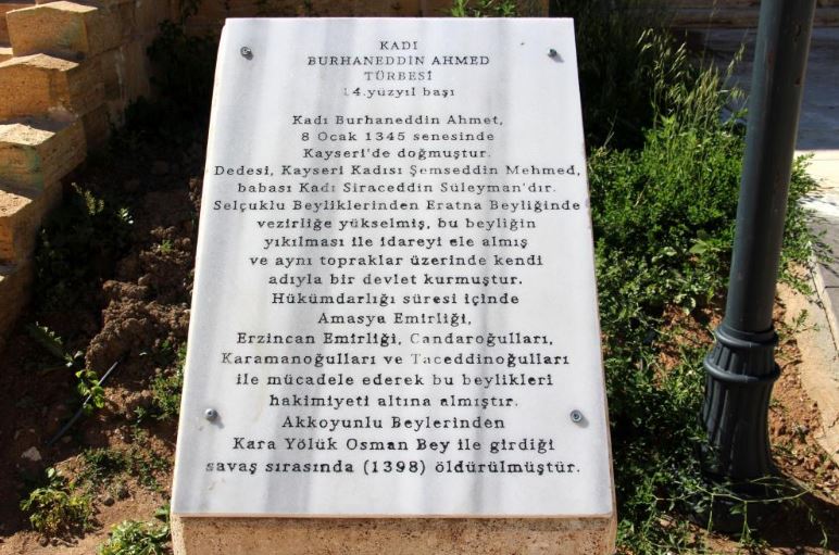 Sivas’ta Eretna devletinin topraklarında adına devlet kuran dönemin ve Türk edebiyatının önemli isimlerinden Kadı Burhanettin’in türbesi Sivas’ta adını alan Kadı Burhanettin Mahallesinde bulunuyor. Çarpık kentleşmenin neden olduğu beton yoğunluğunun arasında türbe, adeta kayboluyor.
