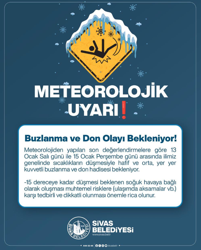 Sivas, meteorolojik uyarı, buzlanma, don olayı, soğuk hava, hava durumu, Sivas Belediyesi