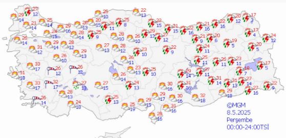 Bugün ise beş büyük kentte güneşli bir hava bekleniyor ancak çölden esen lodos nedeniyle hava kalitesi düşecek ve hissedilen sıcaklık artacak. İstanbul ve Ankara’da 27, İzmir’de 32, Bursa’da 29 derece ölçülürken, Antalya’da yüzde 80’e varan nem ile hissedilen sıcaklık 30 dereceye ulaşacak.