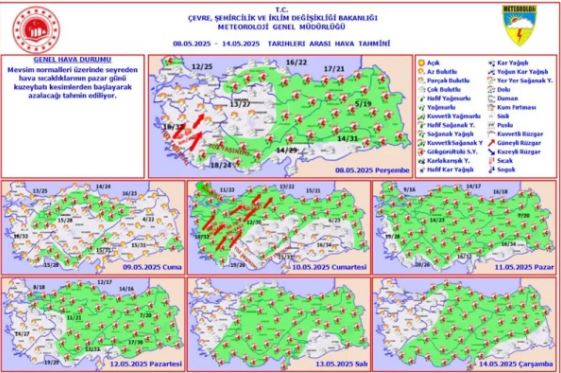 Meteoroloji Genel Müdürlüğü, hafta sonundan itibaren sıcaklıklarda ani düşüş ve yurt genelinde sağanak yağış beklendiğini açıkladı.